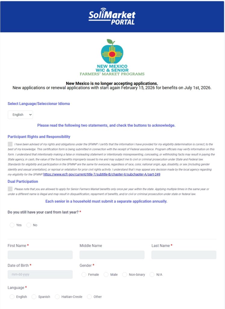- Farmers Markets, Food Hubs, Mobile Markets & Farm/Roadside stands contact the NM WIC & Senior Farmers Market Program for more information.